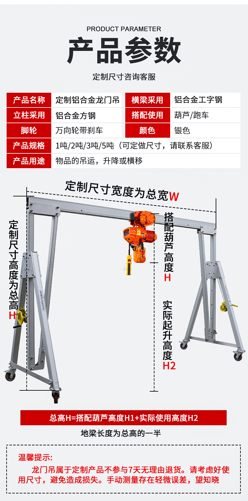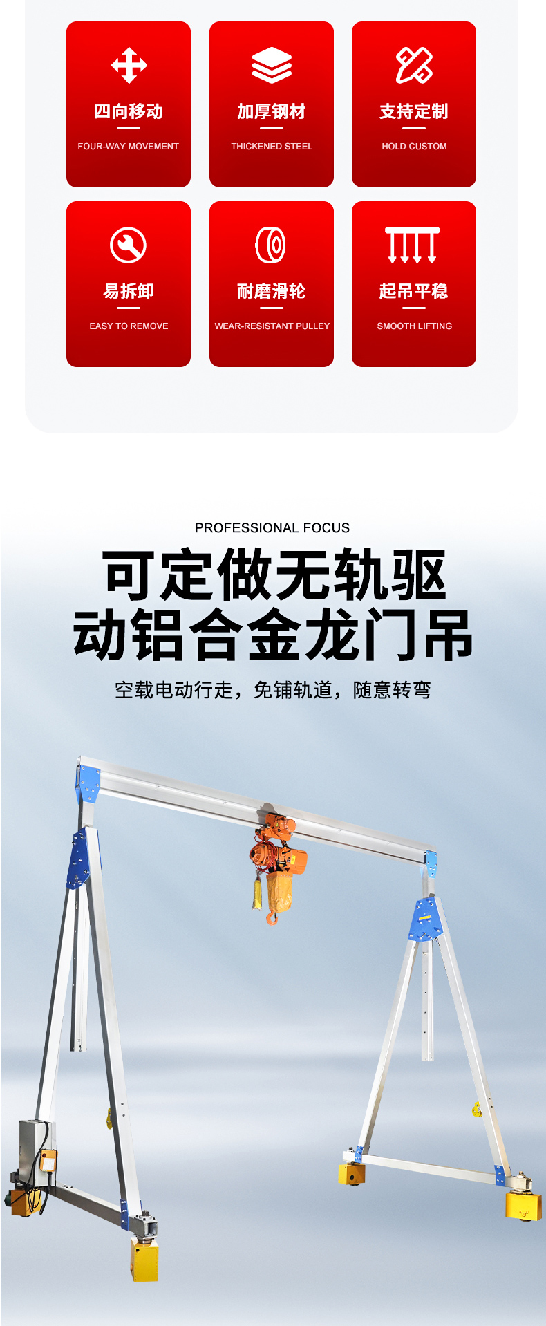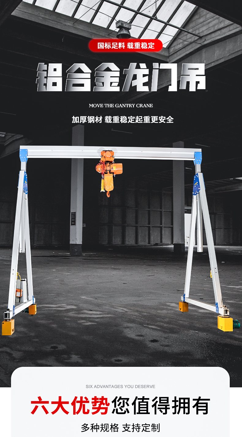 龙门吊铝合金移动小型吊车起重机电动升降式吊架可拆卸简易龙门架